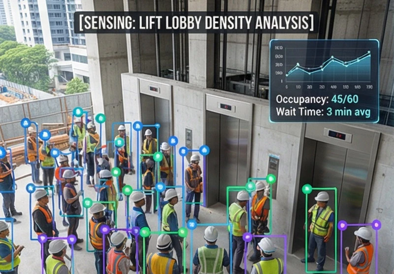 Monitor worker density at lift entrances to prevent overcrowding and ensure efficient, safe site mobilization.
